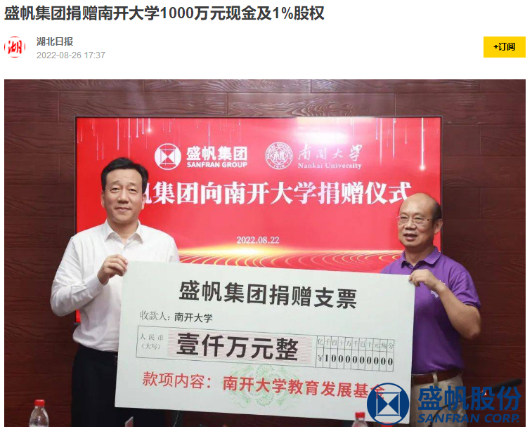 9月22日,盛帆团队活动与南大招学在东莞签立捐赠和谈,盛帆团队活动朝南大招学捐赠1000来万资金和1%控股权,两端取消角度协同作战。盛帆···
